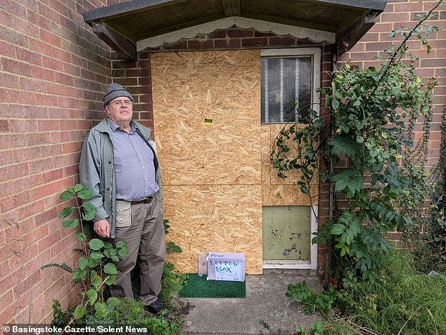 Un pensionista se quedó sin puerta principal durante un mes después de que la policía los había bajado en una propiedad vecina durante un incendio y se negó a pagar un reemplazo.