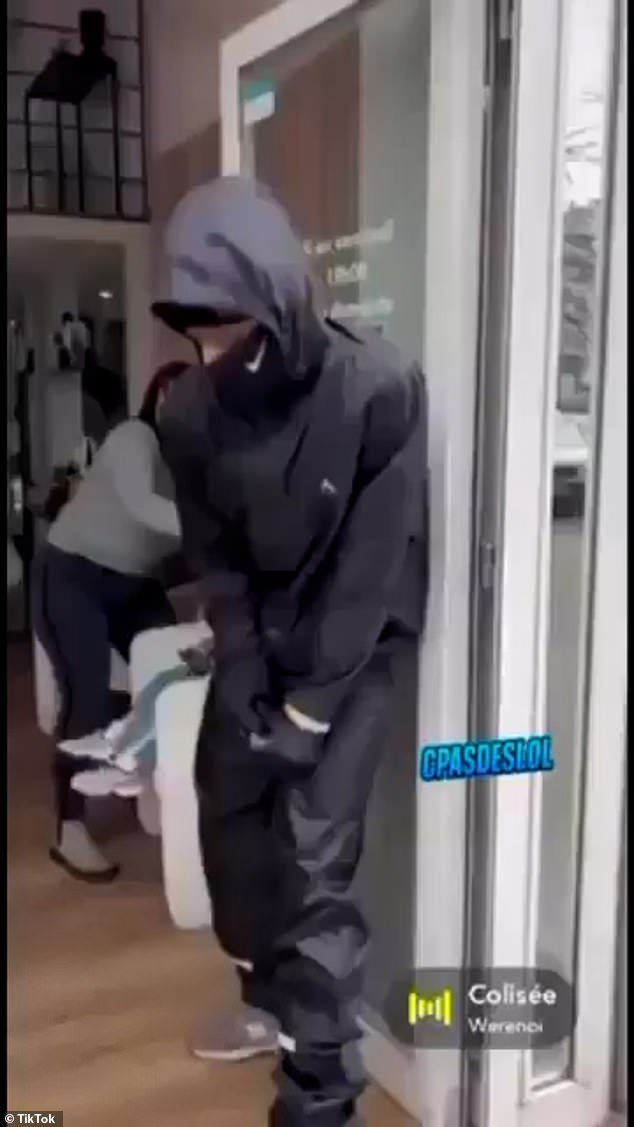 Imágenes aterradoras muestran el momento en que el hombre de Grenoble irrumpió en el salón después de discutir con una mujer en la entrada.