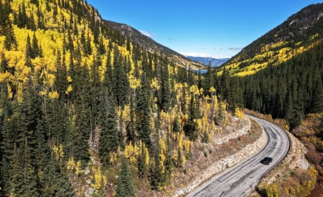 También se encuentra en el extremo norte de Guanella Pass Road, una ruta de 25 millas a través de colinas cubiertas de álamos, que será de oro ligero a fines de septiembre. Los conductores de Denver pueden crear un bucle de 100 millas utilizando la carretera de dos carriles para conectar dos carreteras.