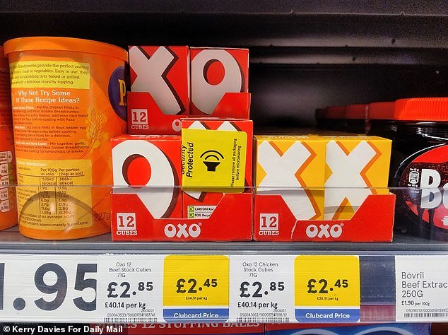 Pero en un intento desesperado por burlar a los ladrones, Tesco se ha visto obligado a colocar etiquetas de seguridad en los paquetes de cubitos de caldo Oxo.