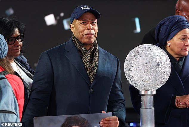 En su último acto como alcalde de Nueva York, Eric Adams presionó el botón para iniciar la cuenta atrás de la caída de la bola en Times Square.