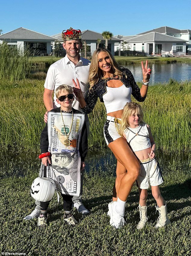 Eric Trump usó un disfraz de Halloween de inspiración real para atacar a los manifestantes de No Kings mientras posaba con su esposa Lara y sus hijos.