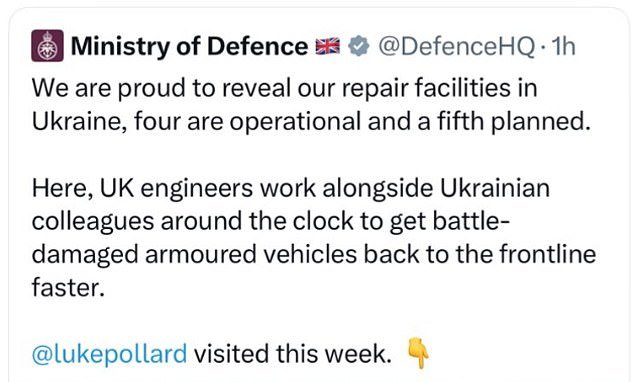 El error fue publicado en línea por el Ministerio de Defensa el sábado por la mañana y mostraba al secretario de Defensa, Luke Pollard, caminando por las instalaciones alardeando de la ayuda británica a Ucrania.