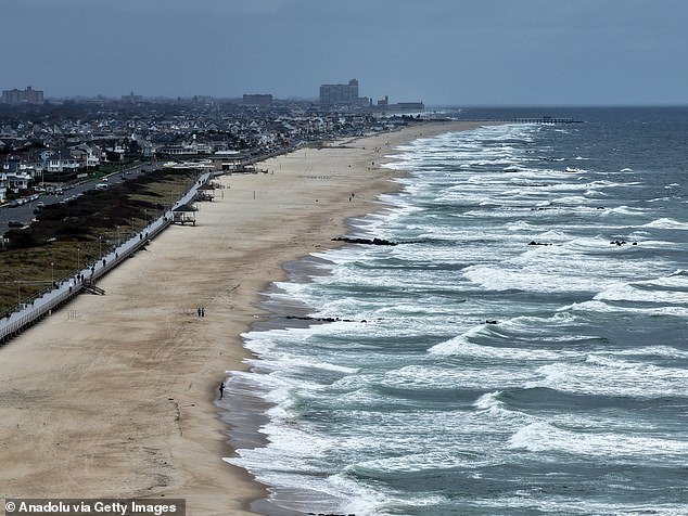 Una vista de la costa con mareas altas cuando Nueva Jersey ha declarado el estado de emergencia para los 21 condados, ya que se espera que un fuerte viento del noreste traiga fuertes lluvias, fuertes vientos e inundaciones costeras a partir del sábado por la noche en Nueva Jersey.