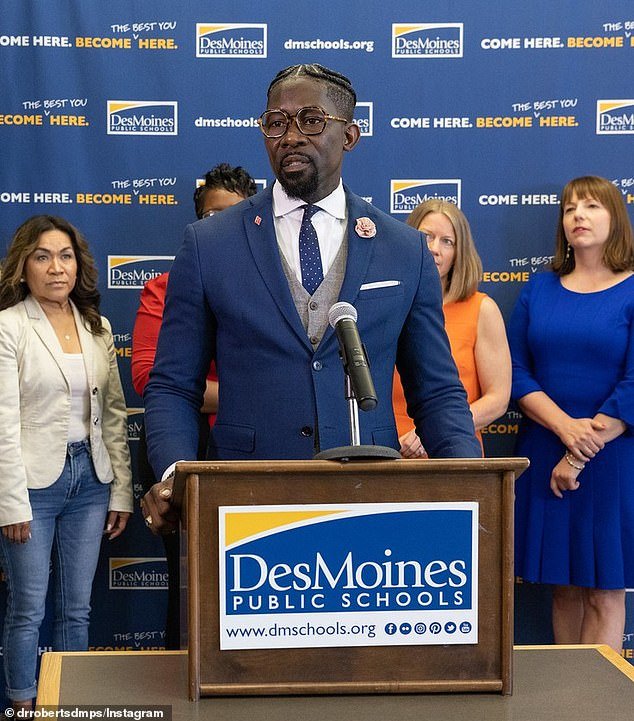 Ian Andre Roberts, ex jefe de la Escuela Pública de Moines, fue contratado como superintendente en julio de 2023. Una explicación de las escuelas de DMS dijo que era un candidato calificado con “experiencia educativa, excelencia académica y pasión por la innovación e inspiración”.