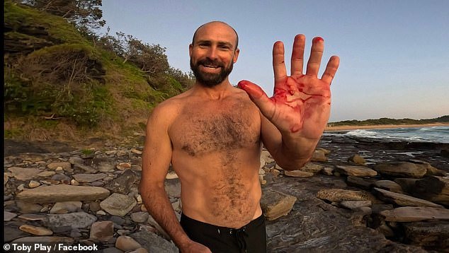Paul Stanton mostró su mano ensangrentada tras ser “golpeado” por un tiburón mientras practicaba surf