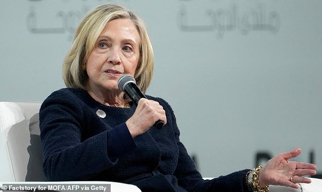 La exsecretaria de Estado de Estados Unidos, Hillary Clinton, habla durante el Foro de Doha en Qatar, el 7 de diciembre de 2025.