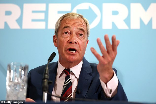 La encuesta de YouGov mostró que el 46 por ciento de los miembros de Tory incluso apoyarían una fusión adulta con la (en la imagen) de Nigel Farages (imagen), mientras que el 48 por ciento hablaría en su contra.
