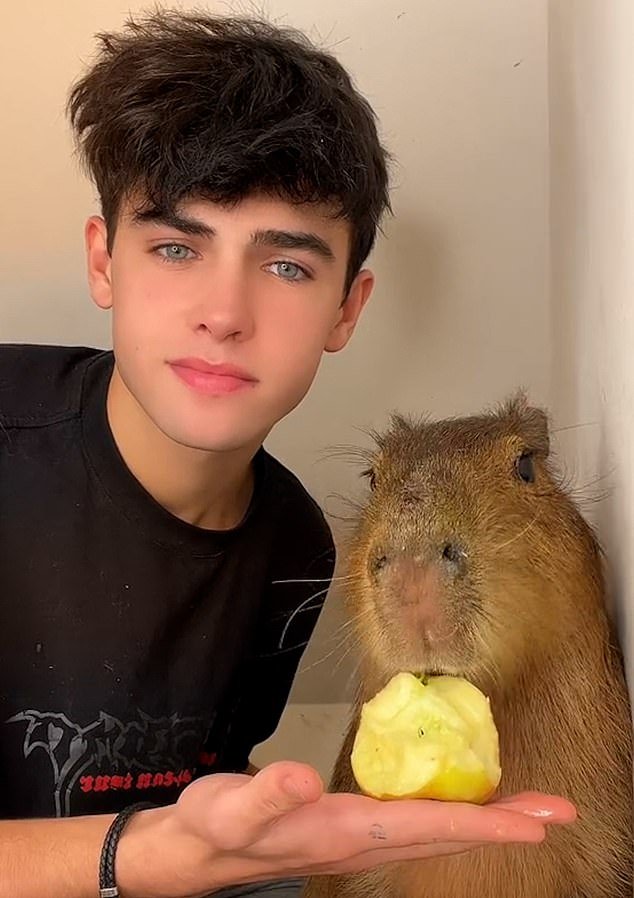 Kyle Thomas con el carpincho que su madre contrabandeó desde Cambridgeshire a Irlanda del Norte