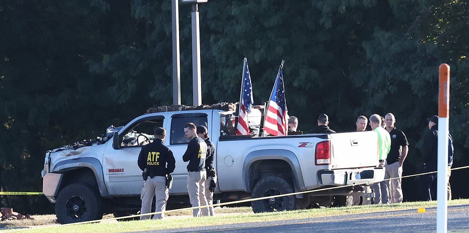 Un conductor aró la barricada en la iglesia quemada de Michigan a través de la barricada, en la que una antigua marina abrió el fuego y mató al menos a cuatro personas.