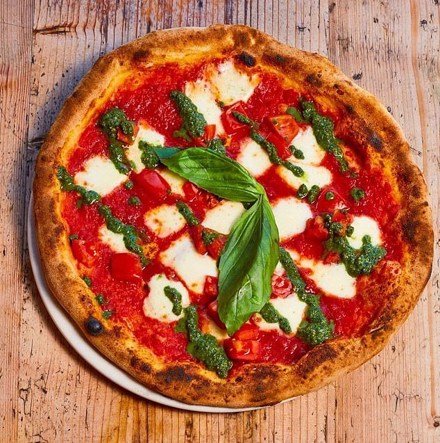 La base es fina y suave, la cornicione esponjosa y maravillosamente burbujeante, mientras que la mozzarella fior di latte (elaborada con leche de vaca en lugar de búfala) se derrite en charcos fundidos sobre una salsa de tomate picante recién hecha.