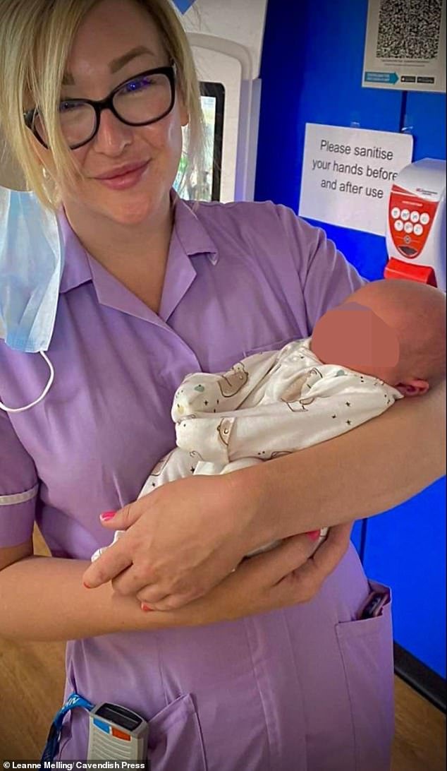 Leanne Melling fotografiada trabajando en el NHS, donde trabajó como asistente sanitaria y ama de llaves.