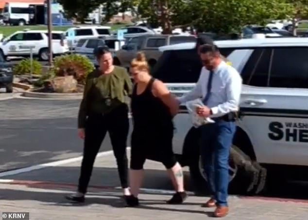 Andrea Loving (en la foto durante su arresto) ha sido acusada de asesinato en primer grado en relación con la muerte de su hija Izabella, de cinco años.