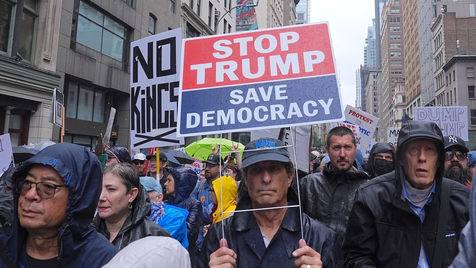Miles de personas participan en las protestas del “Día Sin Reyes” contra la administración Trump en la ciudad de Nueva York el 14 de junio de 2025.