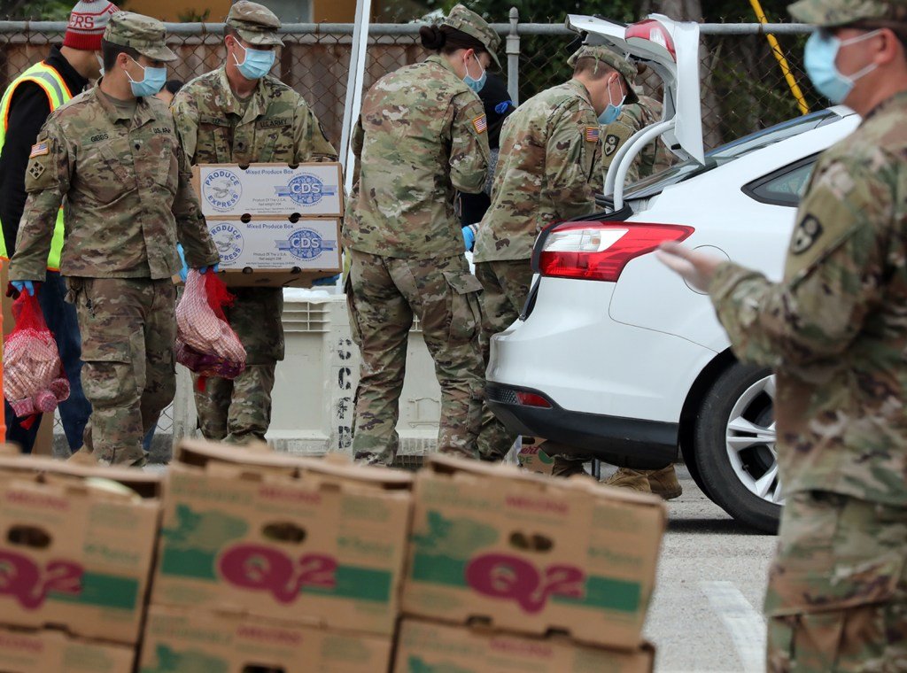 Alrededor de 200 soldados de la Guardia reemplazaron a los cientos de voluntarios de la organización sin fines de lucro que permanecieron bajo órdenes de quedarse en casa. Empacaron, cargaron y distribuyeron comidas a personas que repentinamente quedaron desempleadas o que necesitaban desesperadamente ayuda para alimentarse a sí mismas y a sus familias.