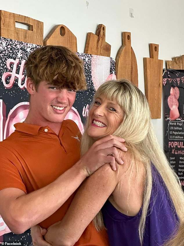 Se ve a Sawyer Lee Updike, de 18 años, con su madre, Sheryl Roberts Updike. Los padres de Sawyer han presentado una demanda por muerte por negligencia contra la fraternidad Sigma Chi de la Universidad de Texas en Austin, alegando que unas novatadas brutales lo llevaron a quitarse la vida.