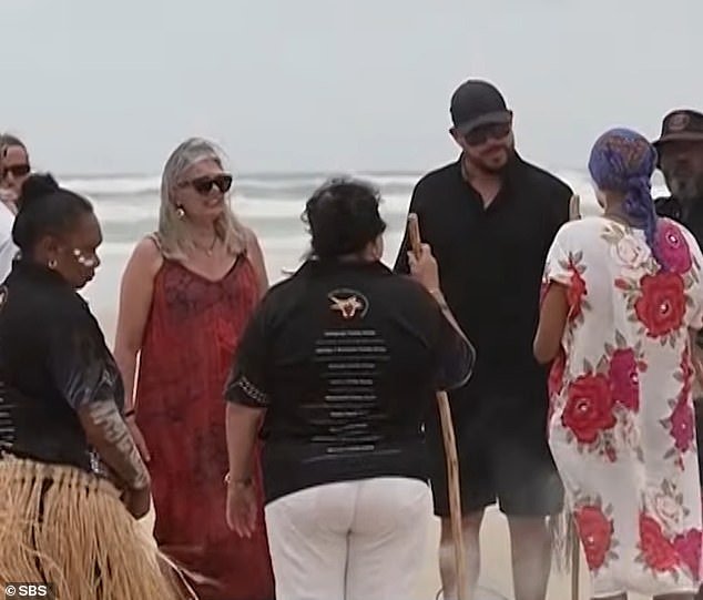 Los lugareños celebraron una ceremonia de fumar (arriba) para la familia de la Sra. James en K’gari el miércoles.