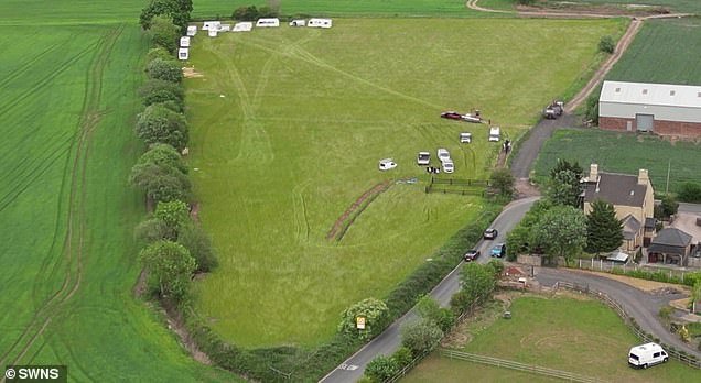 Impresionantes fotografías mostraron la rápida transformación de un pasto verde y exuberante a un caos gris, ocupado por 13 caravanas, cuatro furgonetas, una excavadora y tres coches en tan sólo unas semanas.