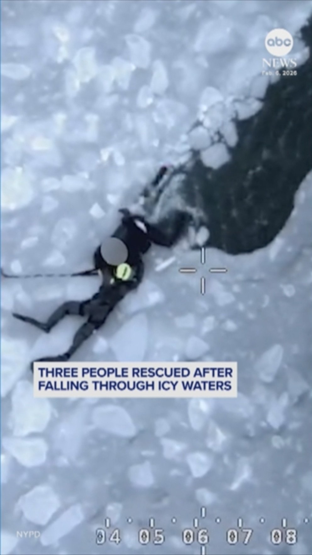 Miembros de la policía de Nueva York y el FDNY rescataron a tres hombres que cayeron del hielo en Queens. Fueron tratados en hospitales locales.