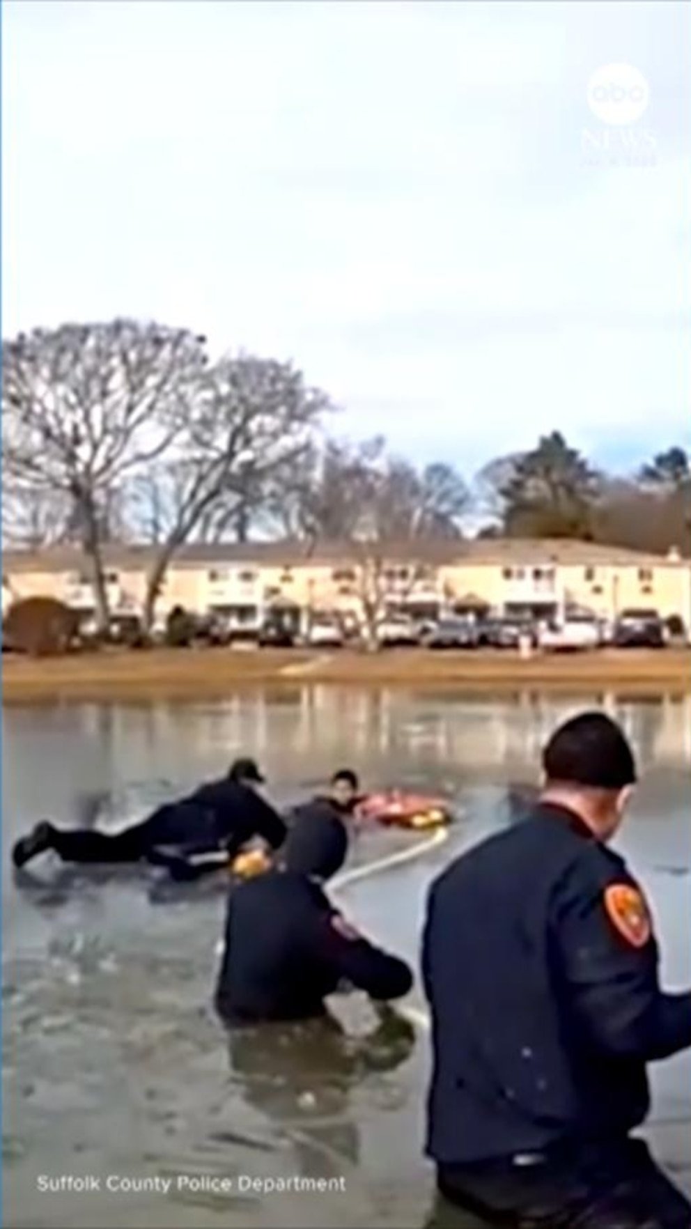 Las autoridades rescataron a un niño de 8 años después de que cayera a través del hielo en un estanque en Long Island, Nueva York, el día de Navidad.