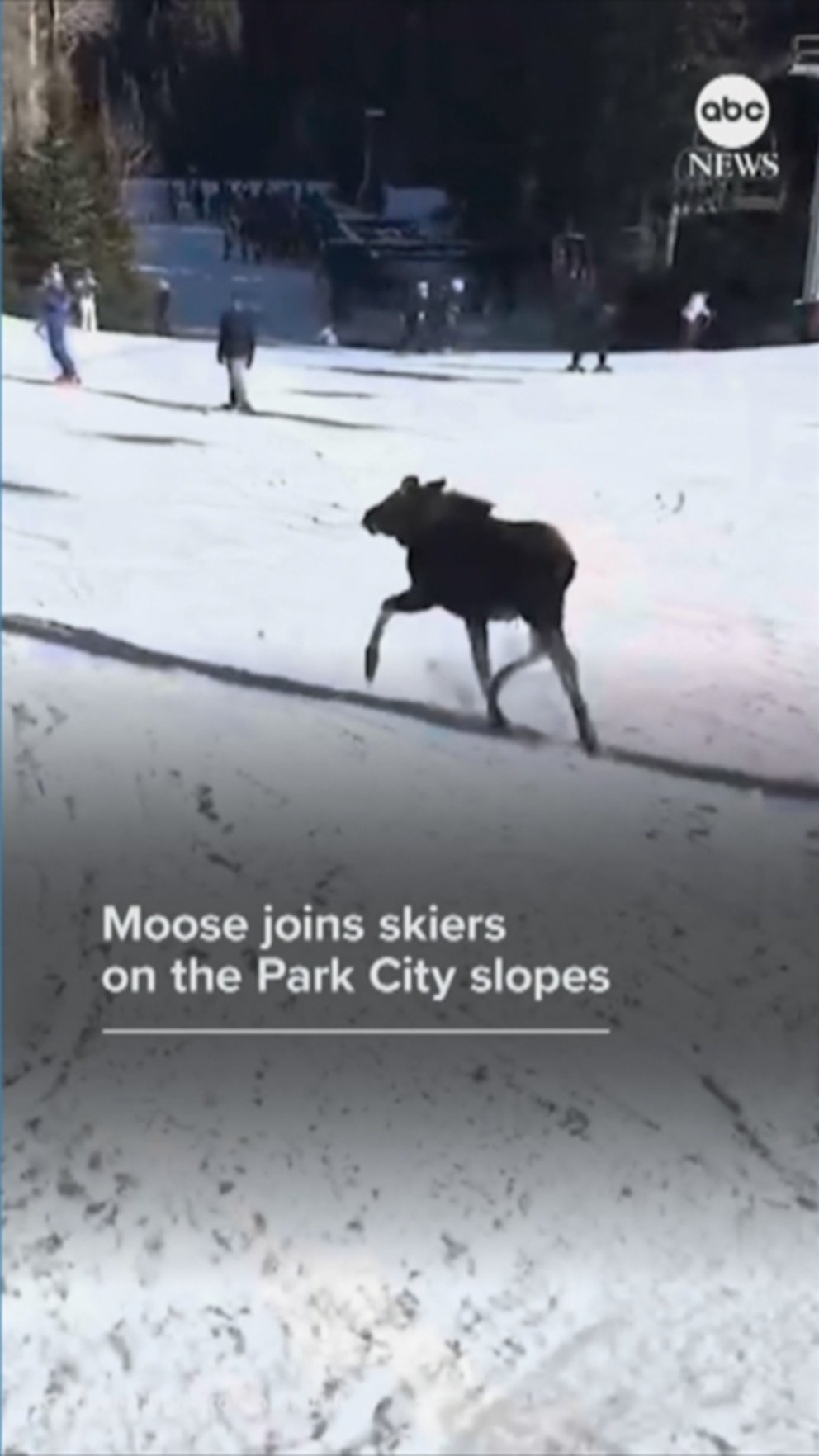 Los esquiadores se detuvieron para admirar a un alce joven galopando por las laderas del Park City Mountain Resort en Utah.
