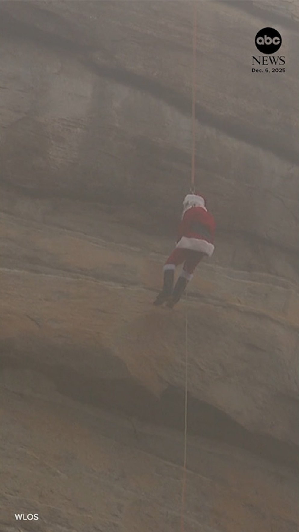 Papá Noel ha sido visto en Carolina del Norte calentándose para la víspera de Navidad haciendo rapel por el acertadamente llamado Chimney Rock.