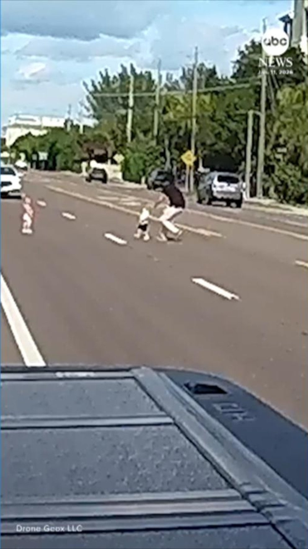 MIRAR: Un hombre salva a dos niños pequeños que caminaban en medio de una concurrida carretera de Florida