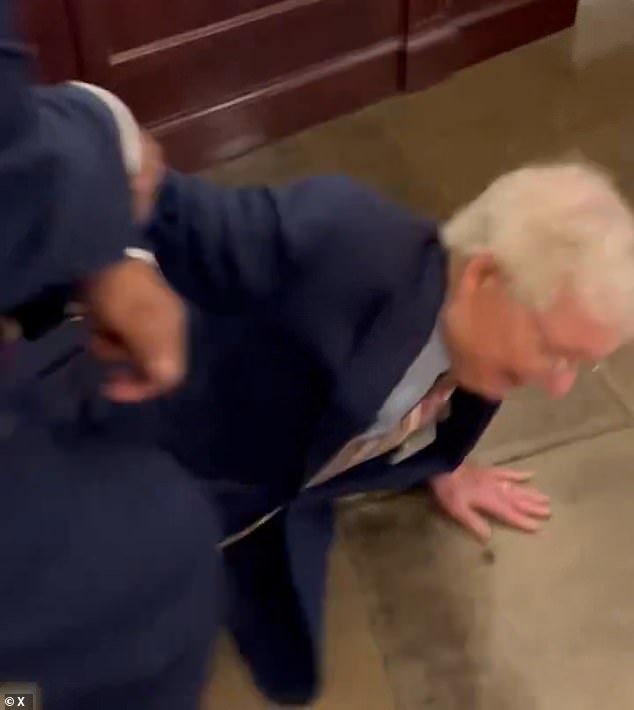 Un periodista le hizo una pregunta al hombre de 83 años cuando perdió el equilibrio en el sótano del edificio de oficinas del Senado Russell el jueves.