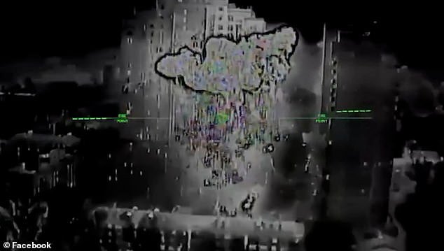 Imágenes dramáticas publicadas por su unidad parecían mostrar drones en primera persona lanzándose hacia un edificio de gran altura antes de que una serie de explosiones masivas sacudieran uno de sus pisos.