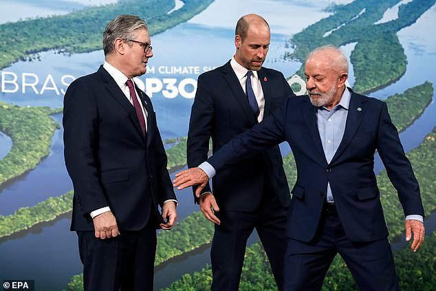 Momento vergonzoso: el príncipe William y Sir Keir Starmer parecen torpemente mientras se dan la mano junto al presidente brasileño en la cumbre del Partido Verde