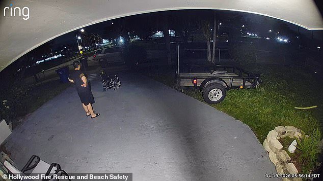 Una propietaria de una casa de Hollywood, Florida, evitó morir o que su casa fuera incendiada moviendo una silla de ruedas alimentada por baterías de litio al exterior después de que emitiera ruidos de clic. Ella aparece en la foto mirando la silla de ruedas.