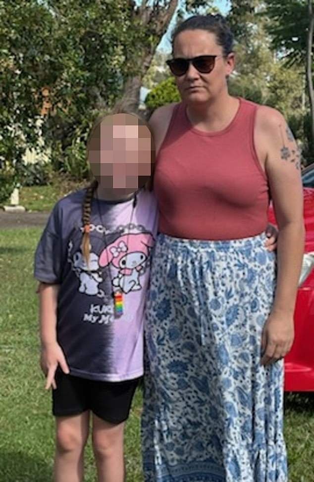 Ruby, de ocho años (en la foto con su madre Brooke), fue encerrada en una cabaña al aire libre en su escuela primaria durante cinco minutos en un día de 31°C el 15 de octubre.