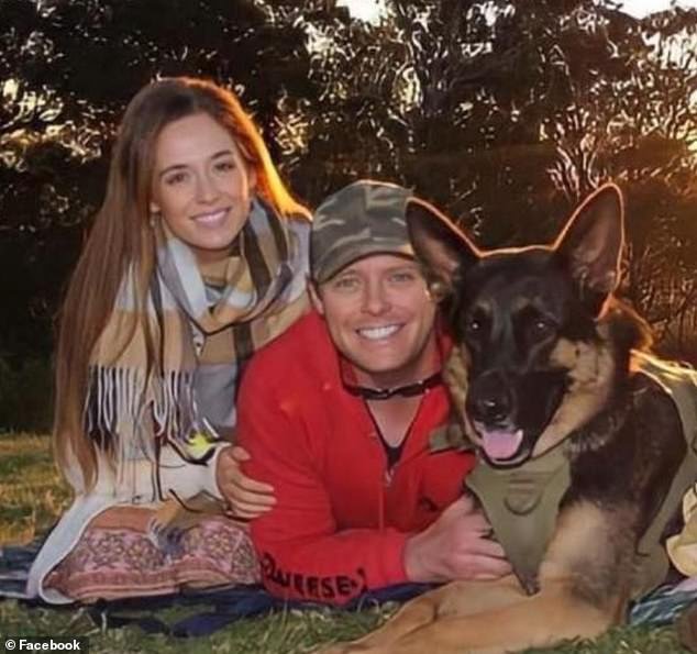 Nathan McKeown aparece en la foto con su esposa y el pastor alemán Arnie.