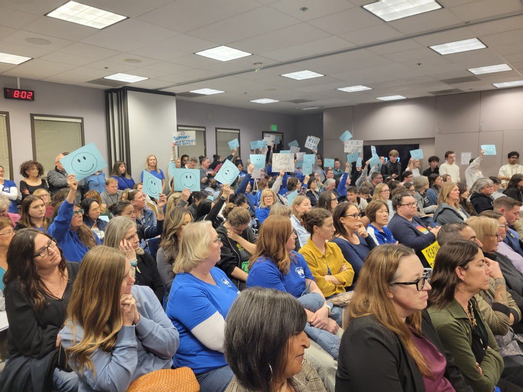 Los posibles recortes ($14,8 millones el próximo año escolar y $1,5 millones que se recortarán el año siguiente) también podrían poner a más de 100 empleos bajo escrutinio, según documentos del distrito. Después de escuchar a más de 30 oradores de la multitud que estaba de pie, la junta escolar votó unánimemente para posponer la discusión y regresar a ella más tarde.