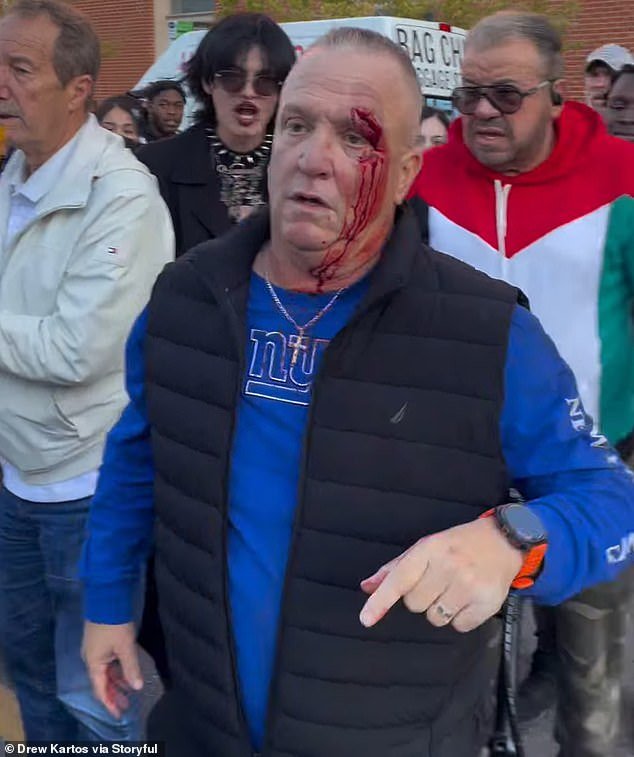 Un partidario del MAGA quedó cubierto de sangre después de caer al suelo dos veces durante un enfrentamiento hostil con los manifestantes de “No Kings”.