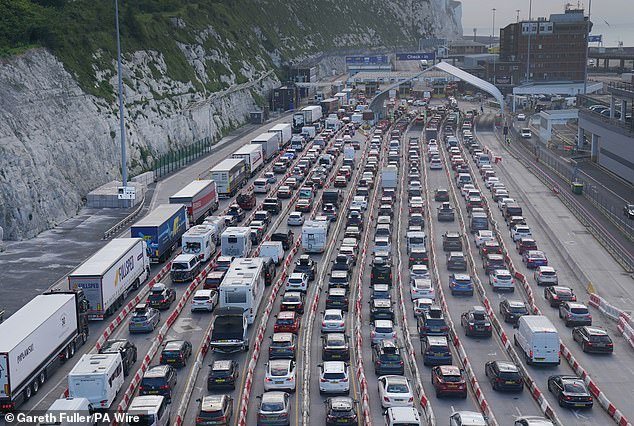 Un nuevo estudio ha demostrado que las carreteras británicas fueron mejor evitadas para familias con niños menores de diez años, con cuellos de botella, atascos y elendas de autopistas. Imagen: Foto de las vacaciones de verano en la búsqueda de Dover, Kent, en julio de este año