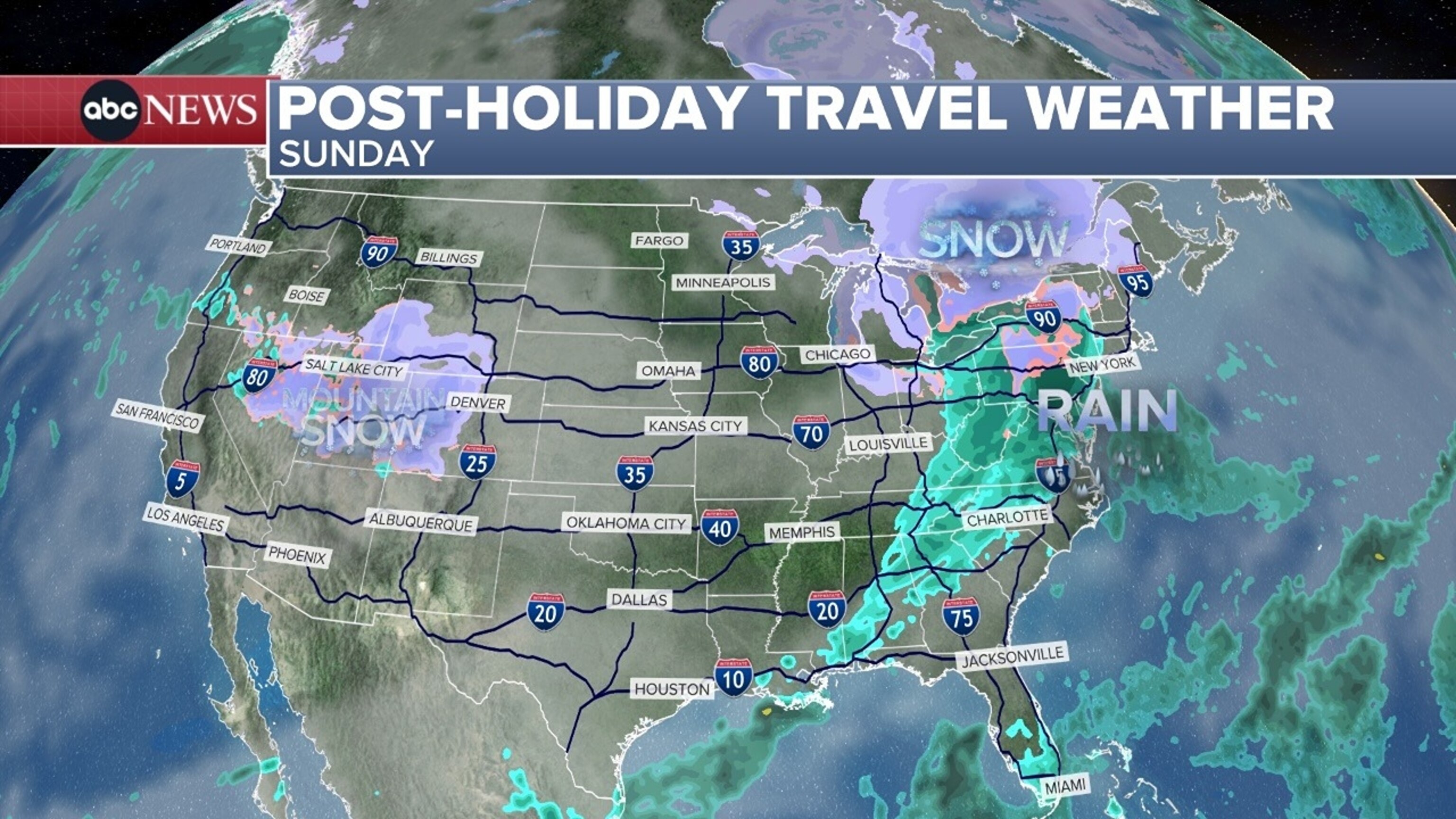 Este sistema puede traer lluvias a gran parte de la costa este, particularmente al noreste, el domingo por la tarde y la noche, con temperaturas demasiado cálidas para nevadas generalizadas.