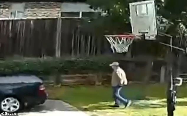 En imágenes de CCTV compartidas por 7noticiasSe puede ver a un hombre con sombrero, chaqueta beige y jeans azules caminando por el frente de una casa.