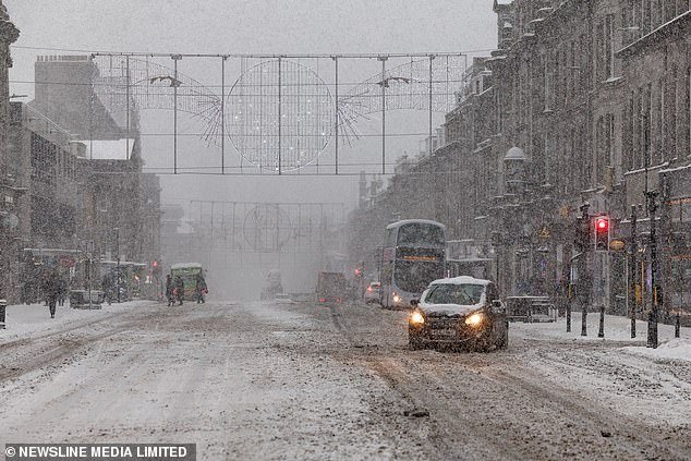 Union Street en Aberdeen era difícil de transitar después de que cayeron fuertes nevadas en toda la ciudad