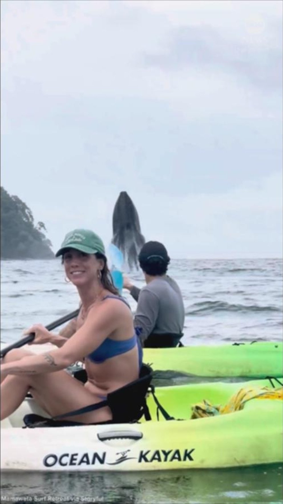 Un grupo de kayakistas mostró un impresionante material de película de cerca con una ballena jorobada y su pantorrilla cuando la pareja resultó herida en Costa Rica.