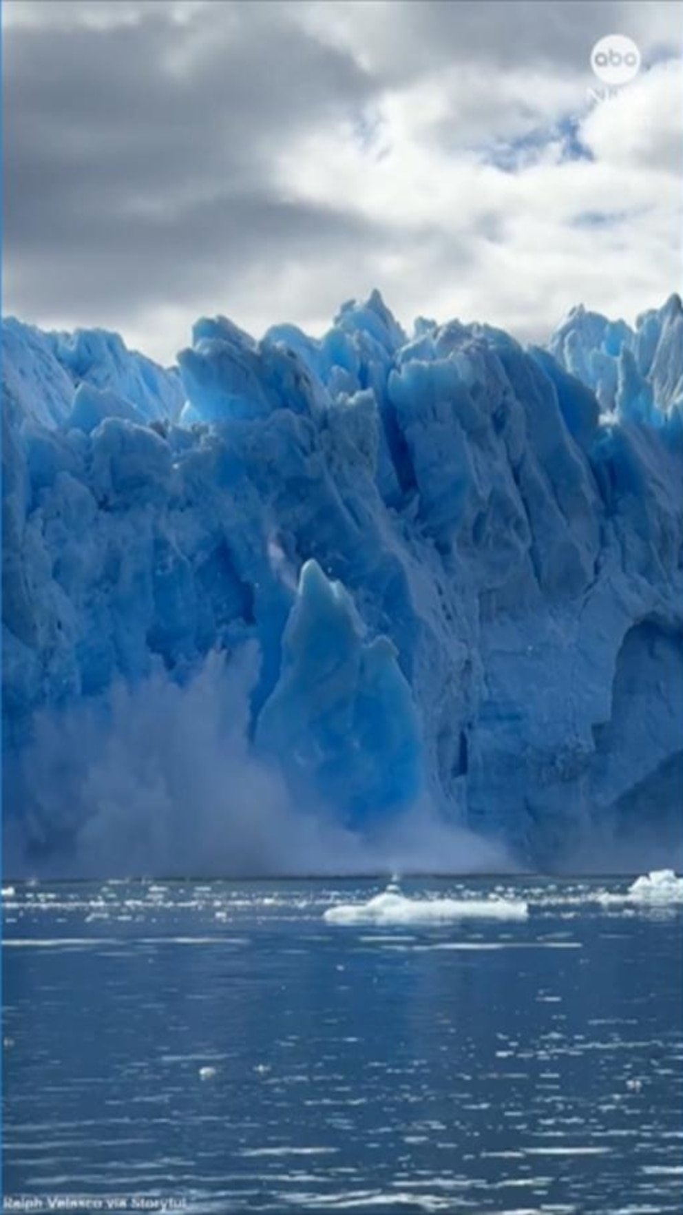 El video de testigos oculares recogió una gran pieza de hielo del glaciar Brugguen en el sur de Chile de una manera espectacular.
