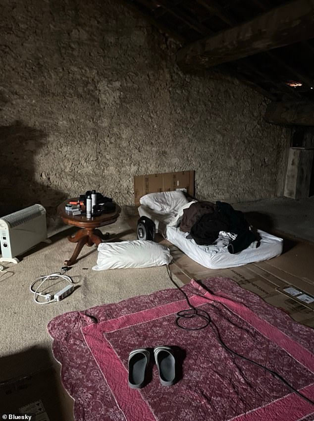 Los usuarios están compartiendo divertidas instantáneas de sus extraños arreglos festivos para dormir en las redes sociales, y esta imagen de una cavernosa habitación en el ático comparada con una “guarida de metanfetamina” ha demostrado ser la más divertida en línea.
