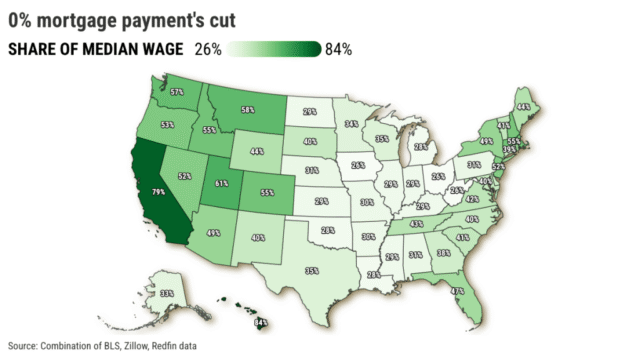 No es solo el estado de oro. En el 6.25% de las tasas de interés, el salario promedio del estado es inferior al 30% de los pagos de la casa. Solo dos países califican en el percentil 75.