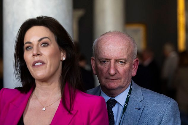 La ministra de Salud, Jennifer Carroll MacNeill TD, y el director ejecutivo de HSE, Bernard Gloster, en el lanzamiento de la estrategia de atención de IA en el Hospital Mater de Dublín esta semana.