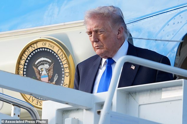 El presidente Donald Trump llega en el Air Force One al Aeropuerto Internacional de Palm Beach en West Palm Beach, Florida, el viernes 24 de abril de 2026. (Foto AP/Manuel Balce Ceneta)