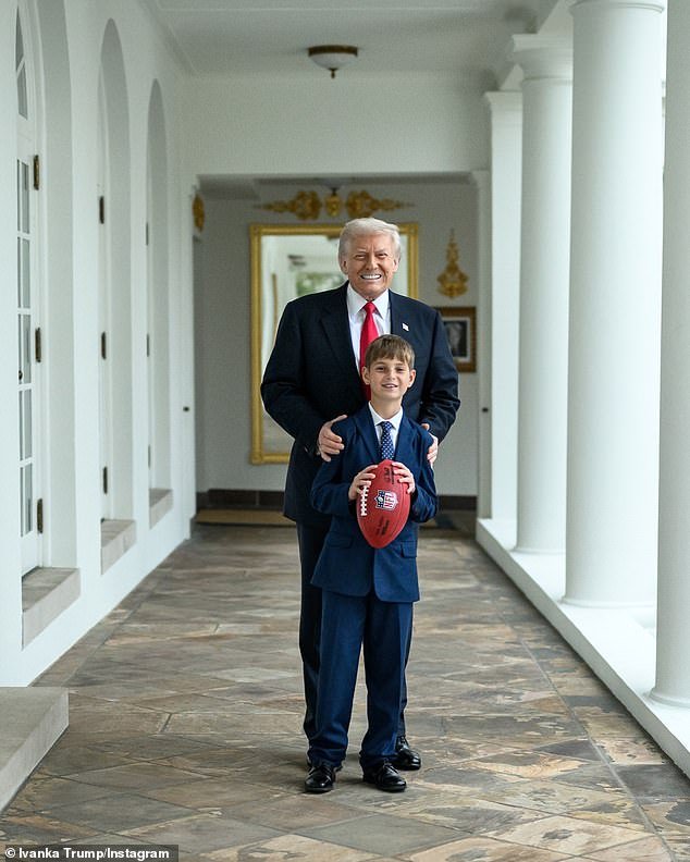 Donald Trump, de 79 años, y su nieto Theodore Kushner fueron fotografiados juntos en la Casa Blanca lanzando un balón de fútbol de la NFL de un lado a otro.