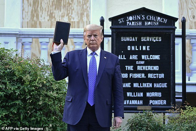 En 2020, en medio de las protestas de Black Lives Matter, Trump caminó una cuadra al norte de la Casa Blanca hasta la iglesia de St. John (después de que los manifestantes fueran dispersados con gases lacrimógenos) y posó para una foto muy controvertida con la Biblia al revés.