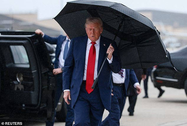 También habló con los periodistas justo antes de abordar el avión en la Base Conjunta Andrews en Maryland, mientras estaba parado bajo un paraguas que se agitaba con el viento implacable.