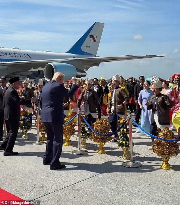 Los tambores sonaron mientras se pavoneaba por la alfombra roja, llevándolo desde el Air Force One hasta los bailarines locales en Kuala Lumpur, la capital de Malasia, el domingo por la mañana, hora local.