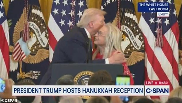 El presidente (en la foto a la izquierda) bromeó en una recepción en la Casa Blanca con Miriam Adelson (en la foto a la derecha) el martes por la noche sobre la posibilidad, que ha sido discutida y descartada en gran medida mientras Trump completa su primer año de regreso en el cargo.